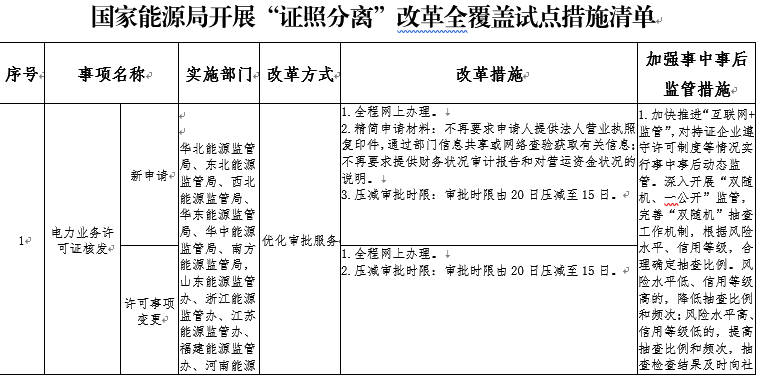 附件:国家能源局开展“证照分离”改革全覆盖试点措施清单