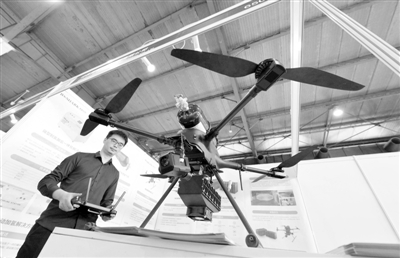 上图 采用最新金属双极板氢燃料电堆作为主要动力来源的四旋翼长航时氢燃料无人机。