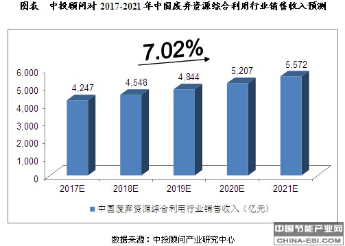 中投顾问对2017-2021年中国废弃资源综合利用行业销售收入预测