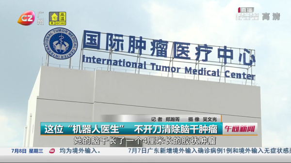 广州电视台综合频道《午间新闻》报道:广州中医药大学金沙洲医院近日采用全球最新型的第六代射波刀,在不开刀的情况下,成功完成了一例脑干肿瘤清除手术!