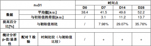 测试一:皮肤锁水及保湿能力提升—28天肌肤水分提升35.7%