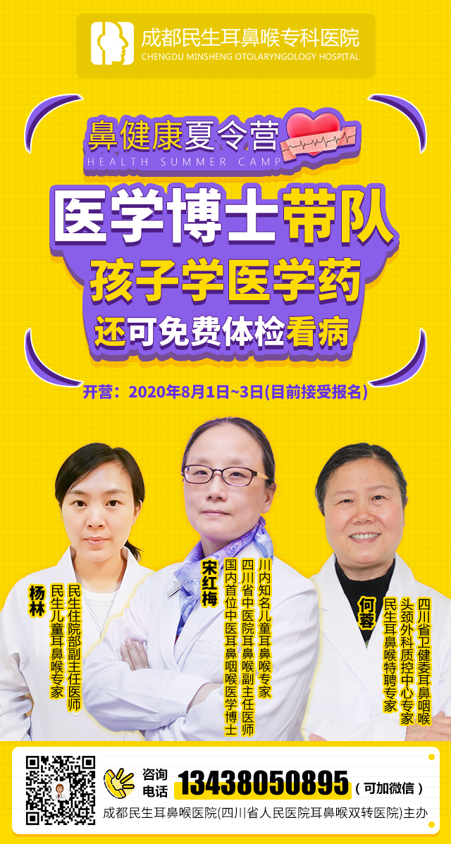 鼻健康夏令营报名啦,民生耳鼻喉携川内儿童耳鼻喉专家宋红梅教授
