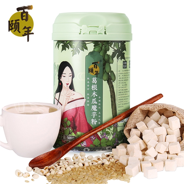 如果大家都像我一样,平时上班比较忙,实在挤不出时间煮粥,还有一个快捷方法! 上天猫搜一款叫百颐年葛根木瓜魔芋粉的,卖得非常火!这款粉是由葛根、木瓜、魔芋、薏苡仁、茯苓、燕麦等纯天然五谷杂粮,用广东中医院的知名老中医独家秘方调配研磨而成的天然粉粉,食补调养效果非常好!