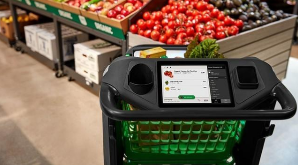 Dash Cart是专为中小型购物旅行而设计的,它有一个面向客户的触摸屏界面,当产品被放入购物篮时,传感器正面对着篮子扫描产品,并且还可以称重物品。购物者可以通过显示屏访问他们的Alexa购物清单,在购物时核对商品,并随时查看消费金额,还有一个优惠券扫描器可以在移动中申请商店折扣。