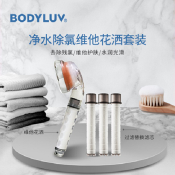 那么BODYLUV芙尔森净水花洒系列有什么特别的优势呢?其中,这款BODYLUV净水香氛维他花洒,最特别的一点就是自带香氛维他除氯器,它不仅可以除去水中的氯,还可以把自来水变成维他水,让冲澡水里含有VC成分,冲澡的同时还能护肤。而且,香氛除氯器的主要成分采自天然成分,仙人掌提取物和天然甘油,天然更温和,并通过了各种皮肤刺激检测,即使是孕妇婴幼儿也可以放心使用!这也是有别于市面上较为低价的类似产品的一个重要区别,要使用不含刺激成分,采用天然提取物的天然香氛来呵护肌肤,打造健康的美肌效果,才是对自己真正的宠爱!
