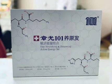 “章光101养原发”赋活能量组合,由章光101铜肽赋活冻干粉 、章光101发干赋活冻干粉、章光101赋活原液三种产品组合而成。总的来说,新产品的特点是:采用最先进的双靶双养特效护理技术,可以同时让头皮和毛根细胞得到充足能量,让头发长长、长粗、转黑、增多。