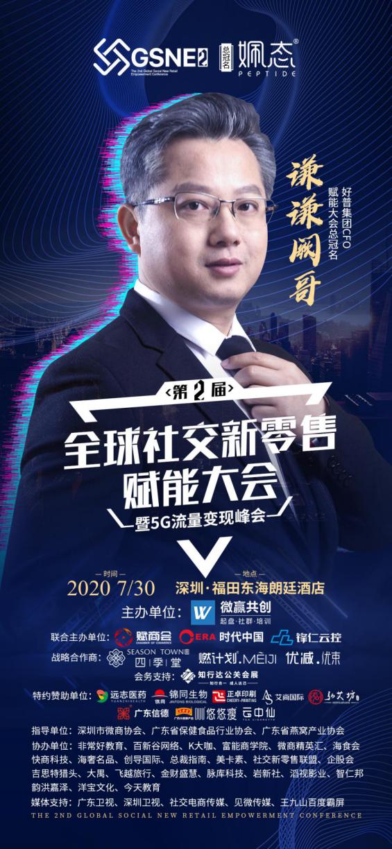 由好普集团姵态品牌总冠名的“第二届全球社交新零售赋能大会暨5G流量变现峰会”,将于2020年7月30日在深圳福田东海朗廷酒店隆重举办。