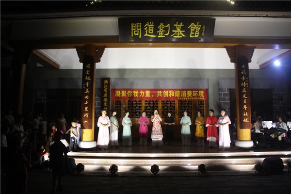 7月28日晚,文成县霜月乡村艺术团以“凝聚你我力量,共创和谐消费环境”为主题的文艺晚会在南田镇问道刘基馆广场精彩上演。