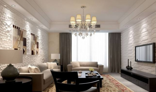 客厅,全体色彩选用轻柔暖色彩,白色,淡蓝,木纹,叶绿色等组合,全表现代精约格调,布置了一个休闲轻松文艺的客厅气氛。
