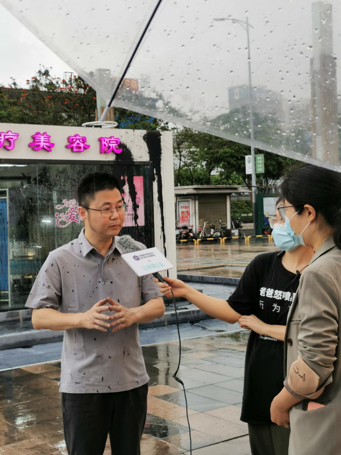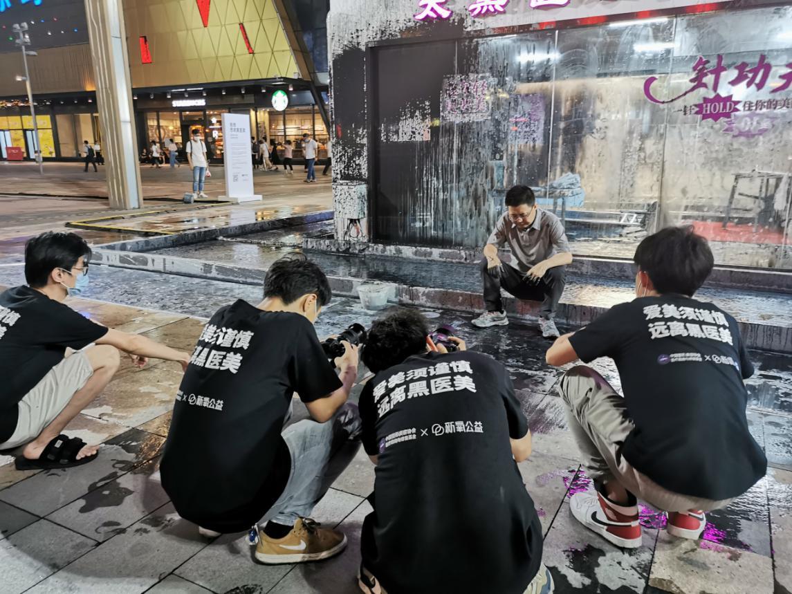 拍摄街头行为艺术“爸爸怒喷黑医美”公益宣传片的那天中午,一场猝不及防的暴雨侵袭广州,似乎是对公益活动主题的某种隐喻。黑医美对无数求美者造成的痛苦,对无数家庭造成的伤害,何尝不是一场突如其来的狂风暴雨?