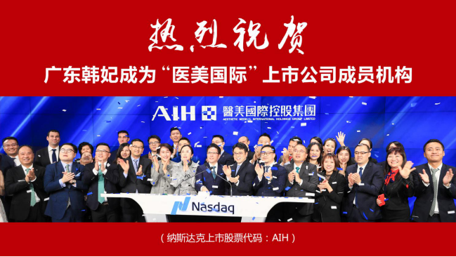 2020年7月16日,对于广东韩妃来说是不平凡的一天,医美国际控股集团牵手广东韩妃集团,举行战略合作新闻发布会,广东韩妃正式成为“医美国际”上市公司成员机构(股票代码:AIH)。