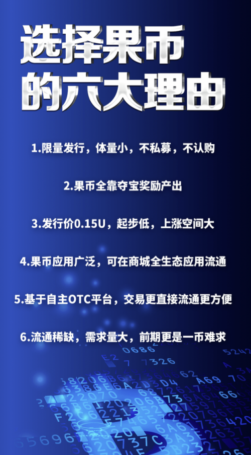限量发行,体量小,不私募,不认购:果币发行总量仅8900万枚,分多期以固定比例缩口式发行,即第一期发行比例最高,后逐期递减。缩口式限量发行方式,让果币具有保值增值的货币功能属性