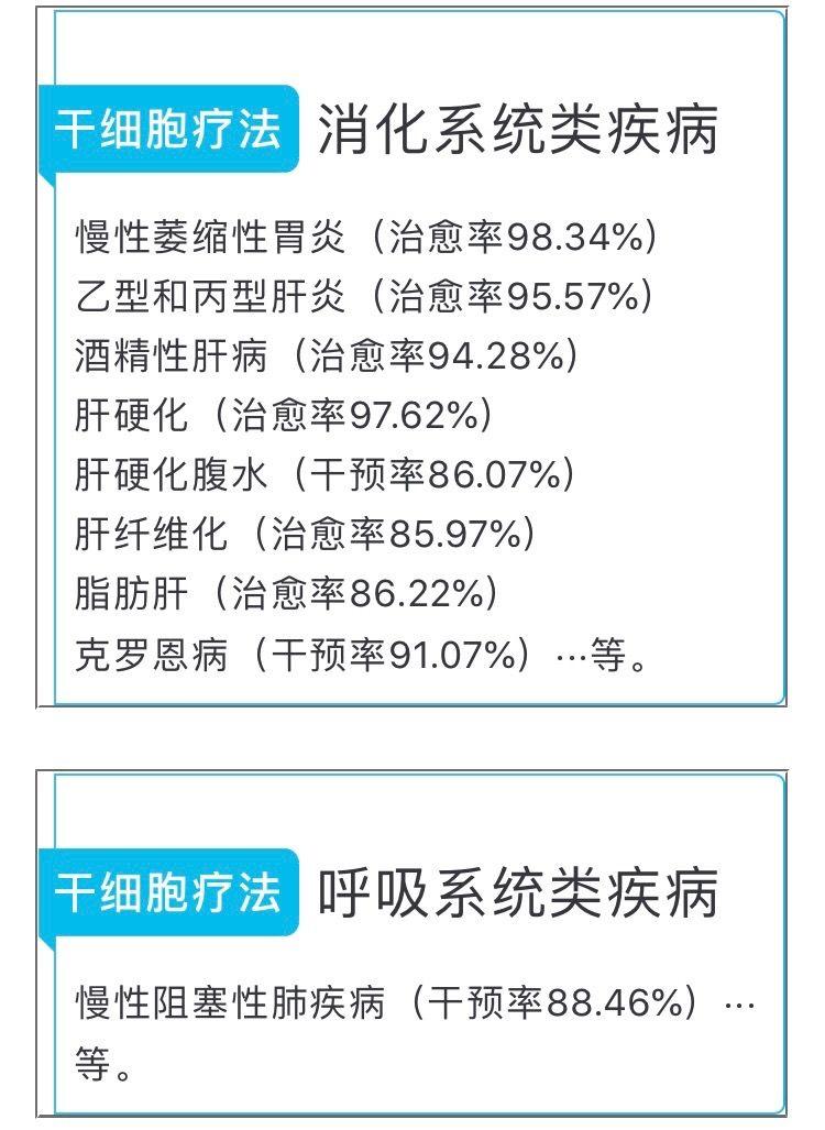 采用干细胞治疗有着多种优势:即使不完全了解疾病发病的确切机理治疗也可达到较好的治疗效果,干细胞疗法是从人体最小单元细胞出发,真正从根本上解决疾病问题,对传统治疗方法疗效较差的疾病多有惊人的效果。