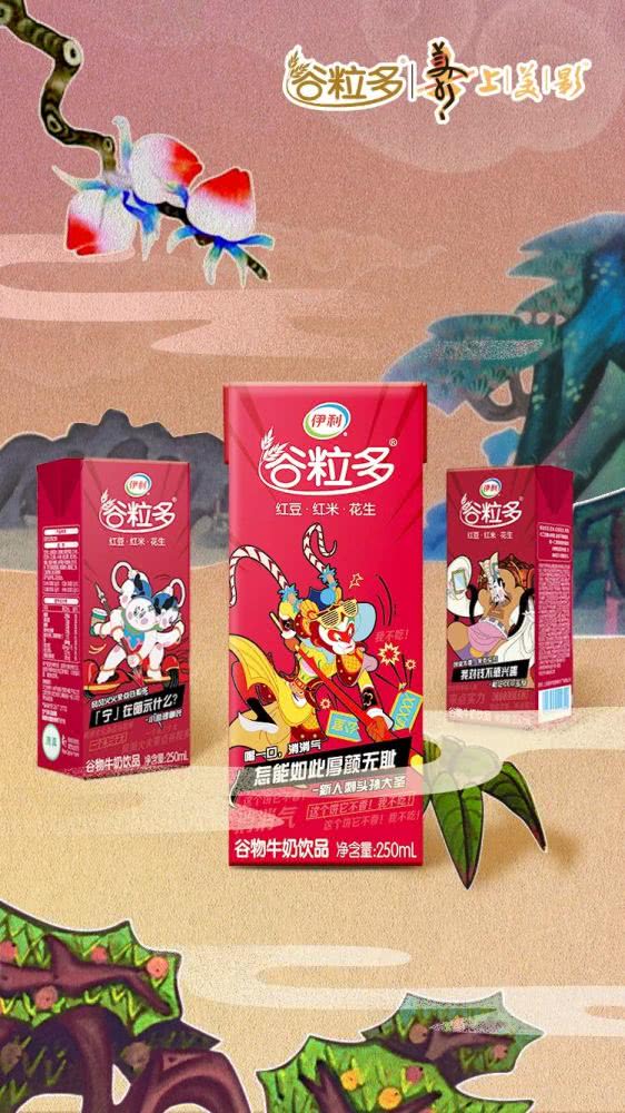 近日,许多消费者惊奇得发现,两代人记忆里的经典动画角色,葫芦娃、齐天大圣、黑猫警长,居然在一款牛奶上实现了同框,形成了小小的“国漫宇宙”,给国漫粉带来了新惊喜。而这款牛奶就是伊利牛奶谷粒多。