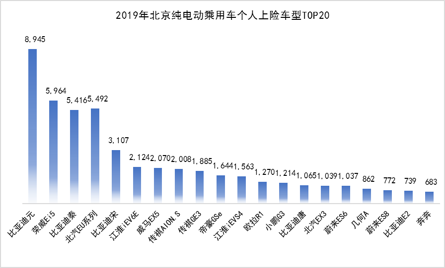 林克艾普大数据分析平台显示,2019年北京Top5车型市场占比达50%,而Top20车型市场占比84%,与2018年的95%相比,集中度大幅降低,说明有更多的品牌和车型进入该市场。2018年,北京私人纯电市场上牌车型仅为68款,而2019年,这个数据达到了105款。