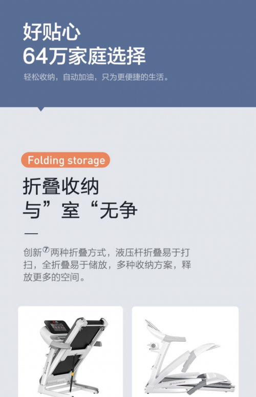 三、再来亿健精灵ELF的诸多贴心功能也十分实用:比如一步折叠方便简单,无论大小户型皆毫无压力;比如自动加油专利实现智能保养,防止意外伤害;比如三机互联随时根据数据情况优化锻炼计划;还有其它个性化选择:如一键减脂模式适合想要快速减脂的人群比如宝妈;健康小走模式适合家有老人健身;五大实景模式改变跑步枯燥;四大跑感足不出户感受沙滩草地的不同等等。