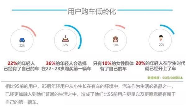 目前,95后的小年轻都已到了买车用车的年龄,不同于70后、80后的按部就班,作为思维活跃的新新人类,95后对于汽车的看法也与他人不同。95后作为互联网的原住民,活跃的网络表现也令他们在选车用车方面呈现独树一帜的特色,最鲜明的便是一定要“智能”,同时,对于“颜值大过天”的他们来说,外观设计也是极为看重的要素之一。