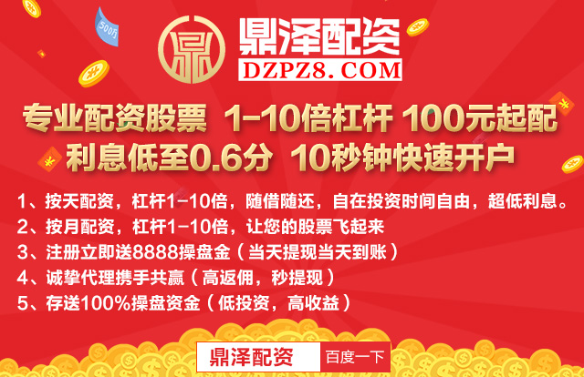 鼎泽配资是国内领先的互联股票配资平台,是一家专注于股票投资、金融服务、及资产管理的专业机构,平台以帮助用户安全、高效和快速财富增值为主线,客户可以通过本平台获得最高10倍杠杆,最高可配1000万操盘资金,全程络操作,高效便捷。