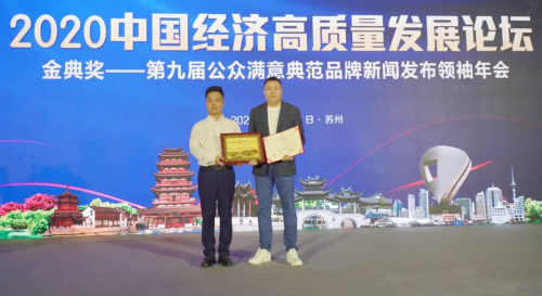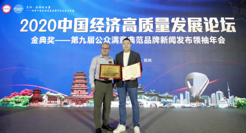 2020年8月26日,由中国商报社、中国商界杂志社、中国信息界杂志社、中国流通行业管理政研会信用管理专委会、中国管理科学研究院商业模式研究所、中国合作贸易企业协会电子商务分会、江苏掌心企业管理咨询集团等媒体机构联合主办的“2020中国经济高质量发展论坛暨金典奖第九届公众满意典范品牌新闻发布领袖年会”在苏州金鸡湖凯宾斯基大酒店举办。