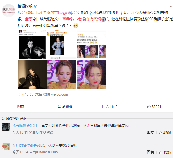 这次,金莎再爆金句:80后我不考虑的,90后狮子座加分。从“萧亚轩的快乐”到金莎的“80后不考虑”,不禁让小编感叹姐弟恋的美妙。
