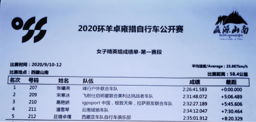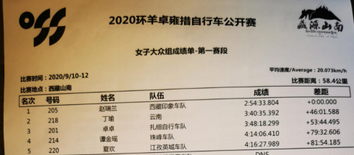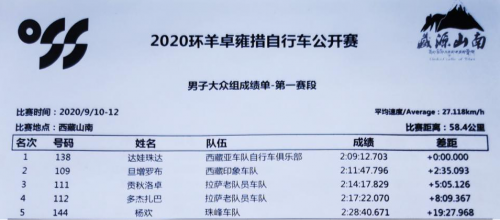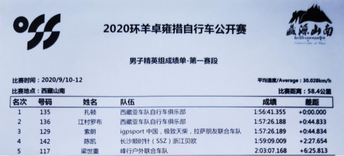 附:2020环羊卓雍措自行车公开赛第一天赛事成绩