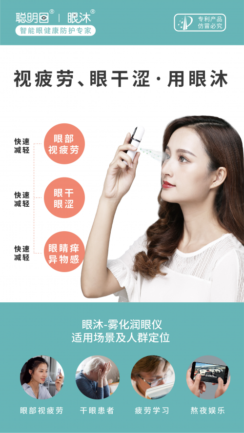 核心专利产品以眼沐喷洒式给药器(已获得发明专利及多项实用新型专利)、“可视”热敷蒸汽眼罩为代表,为用户提供专业、便携的新型护眼方式。