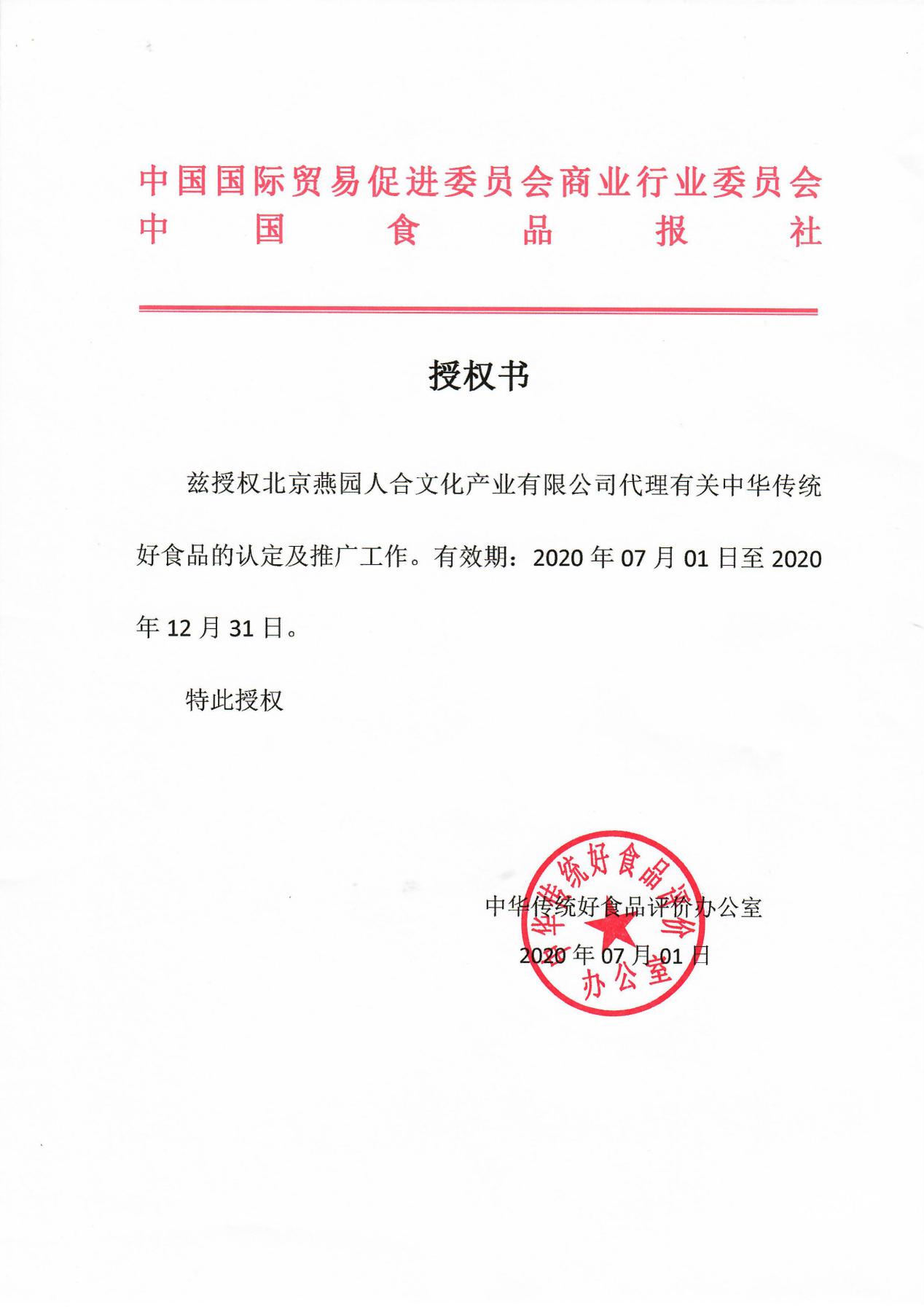 2020年7月,经层层筛选、专业把关,燕园人合成为《中华传统好食品评价》评选及推广单位,其意义和价值在于挖掘、传承、创新、发展中华传统好食品,倡导和树立行业内优秀的传统食品企业榜样,打造中华传统好食品的品牌;同时,积极引导消费者科学对待、正确认识中华传统好食品的安全性与健康价值,扩大中华传统好食品在国内外消费者中的认知与认同。