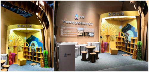 据了解,熊熊环保科技有限公司探索“非遗+”的资源整合新渠道合作方式,主要是得益于公司自主研发生产的布达赫特新材料得天独厚的环保优势。“布达赫特新材料通过与文创设计深度融合,结合中国传统建筑“斗拱“和乐高模式,创造出前所未有的“纸结构“理念。具备环保、轻奢、高效、低成本等优势,可以实现场馆方、承办方、服务商、参展商四方共赢。”熊熊环保科技有限公司常务副总张振强介绍道。