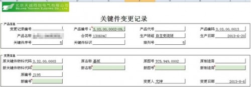 单独开发关键件变更模块,填写变更记录后可自动回写关键件记录表