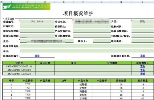 项目概况记录了项目现场的情况,并可关联显示该项目合同信息及合同发货的相关情况。