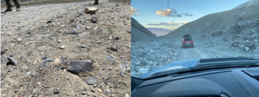在阿里无人区都是这种石头路、搓板路和卵石路,非常考验减振器的稳定性