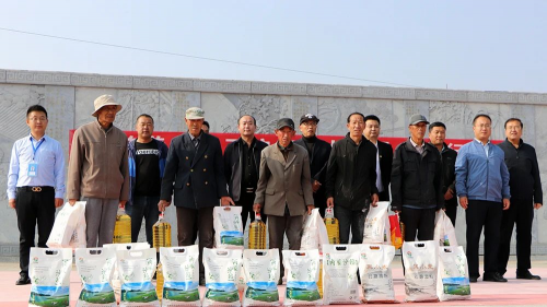 秋风习习,瓜果飘香。9月27日,洋溢在张北县台路沟乡后大营滩村的欢声笑语如同秋日丰收的喜悦让人心头和身上都暖暖的。与此同时中能昊龙集团“共聚美好张北•决战脱贫攻坚”扶贫百户行活动启动。在驻村第一书记郭志贤的带领下中能昊龙集团为张家口张北县台路沟乡后大营滩村的251户贫困户和香杏沟的51户贫困户赠送由集团旗下冀康现代农业园自主生产的1600公斤米、1600公斤面和1600升油。真情帮扶暖人心,中能昊龙用实际行动助力张北县台路沟乡后大营滩村脱贫攻坚帮扶工作,并给贫困群众们送上了中秋祝福,提前祝他们过上一个温馨祥和的中秋佳节。