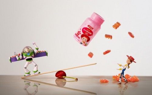 味道好,汤臣倍健针叶樱桃维C软糖的外形也很好看,外包装采用了明亮鲜艳的粉红色为主题色,搭配迪士尼动画电影《玩具总动员》中的角色,让软糖的外形看起来既醒目可爱,又极富童趣,更容易引起孩子们的喜爱,更愿意吃。