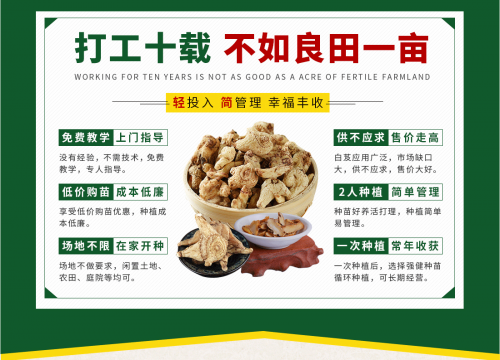 首先云南嘉农年华滇圣草白芨种植不仅仅是简单的种植事业,还有品牌云南嘉农年华滇圣草成功开发的基础,很好的技术支持的诱惑,让种植本身有较高的起点。种植户需要有自己的土地资源,需要进行平时种植的管理与日常的管护,这样种植业本身的发展就具备了基本的条件。同时这种与企业合作的种植事业,为得到更好的发展可能,有着较高专业标准的基础,是可以寻求事业 展来说,非常关键的内容。