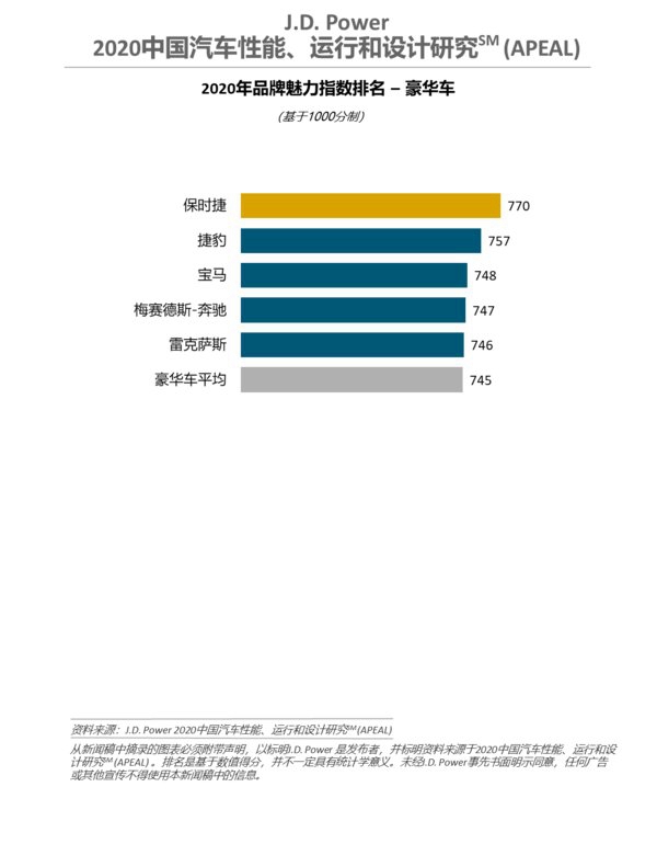 J.D. Power 2020中国汽车性能、运行和设计研究(APEAL)豪华车品牌魅力指数排名
