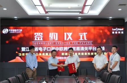 9月27日下午,江苏省电子口岸有限公司、朗新三亚金关信息科技有限公司合作协议签约仪式在省电子口岸顺利完成,江苏国际贸易“单一窗口”特色项目中欧跨境贸易清关平台正式上线运行。