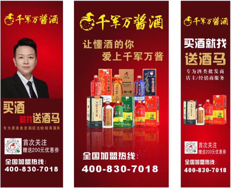 目前,千军万酱酒送酒马已成功签约加盟商达12286家,总公司发展规划今年突破2万家加盟商,2021年达到3万家以上加盟商,2022年达到5万家加盟商。