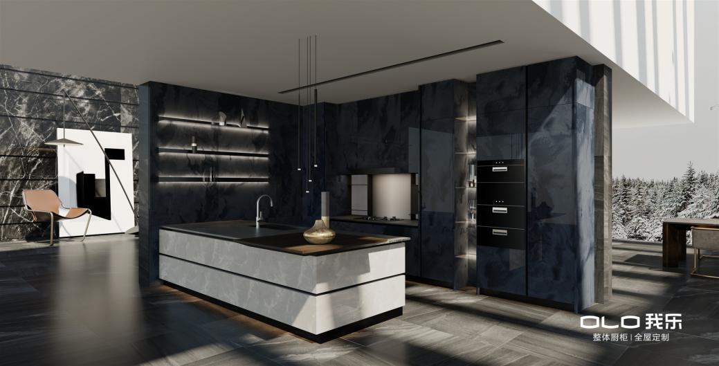 在外观设计上,15年来我乐研发团队持续推出了多款强势产品。比如,其2019年10月,推出的现代风格的星云系列整体橱柜产品,将宇宙星空这一前沿设计感与经典的高光UV材质两相合一,在业界掀起了一场以极具科技感的现代风格为趋势的整体橱柜风潮。
