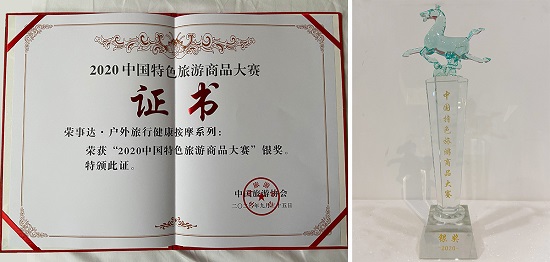 2020年9月25日-28日,中国旅游协会、四川省文化和旅游厅、乐山市人民政府举办2020中国特色旅游商品大赛,此次活动以树立中国特色旅游商品品牌,促进全国旅游商品创新,推动全国各省区市旅游商品快速发展,扩大旅游购物消费为宗旨。合肥荣事达电子电器集团有限公司户外旅游健康按摩系列产品,凭借自主品牌精品,且具有市场性、实用性、创新性等突出特质,斩获大赛银奖。