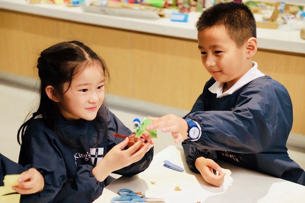 从名作中汲取灵感进行手工创作,既让孩子们在动手的过程中接受了艺术鉴赏的熏陶,同时也对环保、再生材料的应用树立认知,这正是深圳国王学校“让孩子们能通过与老师、同学以及环境的积极互动获得成长,形成自己独特、正直、自信的品质”教育理念的现实样本。