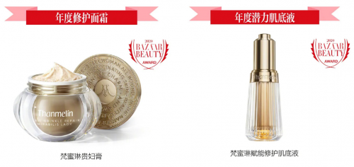 作为新锐国货之光的梵蜜琳,前段时间在“让美·超越时光”2020芭莎国际美妆大奖颁奖盛典上,梵蜜琳贵妇膏、梵蜜琳赋能修护肌底液突破重围,双双荣膺年度重磅嘉奖,分别斩获“年度修护面霜”、“年度潜力肌底液”荣誉。