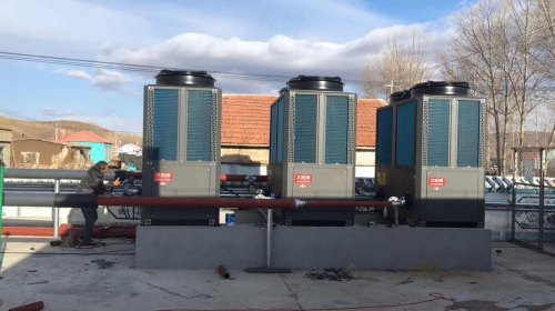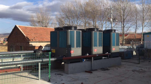 内蒙古乌兰浩特一学校,原来都是采用燃煤锅炉取暖,2020年在政府政策的引导下,拆了煤锅炉,安装了太阳雨空气能采暖机组。据该项目的负责人张总介绍,学校采暖面积有3000多平米,配置了3台50P的空气源热泵采暖机组。