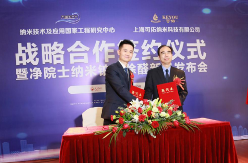 11月9日,纳米技术及应用国家工程研究中心与上海可佑纳米科技有限公司战略合作签约仪式暨净院士纳米铂金除醛新品发布会在纳米技术及应用国家工程研究中心举行。