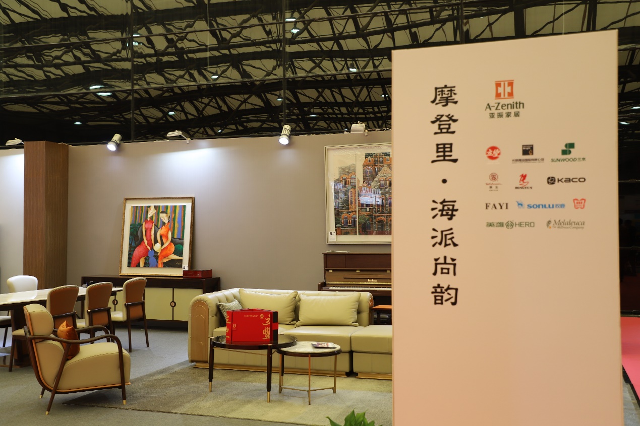 本次尚博荟最大的亮点就是【摩登里•海派尚韵】展示区,这是尚博荟携手亚振家居及诸多上海轻工知名品牌企业一起倾情打造的沉浸式摩登海派家居展示厅。本区融合了亚振家居觅上客厅、本然茶室、麦蜂Maxform等多个空间,设计师们以心怀东方的人文情怀,汲取世界家具文化之精髓,凭当代装饰艺术手法,呈现出时尚舒适的新海派雅致生活。