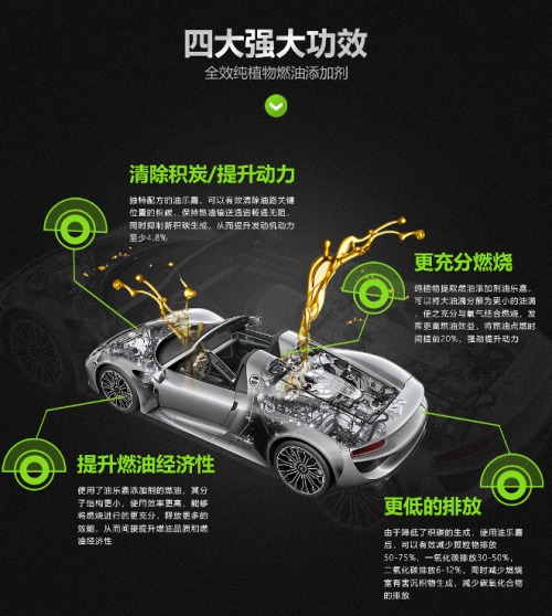 从功能性角度,EuroAd油乐嘉可减少能源消耗6-12%,增强动力4.8%,减少PM颗粒物质排放50-75%,减少一氧化碳及碳氢化合物排放30-50%,减少二氧化碳排放6-12%,不仅能有效清除积碳,并抑制新积碳生成,延长发动机使用寿命,使燃油更充分燃烧,不仅能为车主带来更清净、更耐烧、更省油、提速更快的驾驶极致体验,还能助力企业着力环保,节能减排,使企业兼顾经济效益与社会效益的双赢。