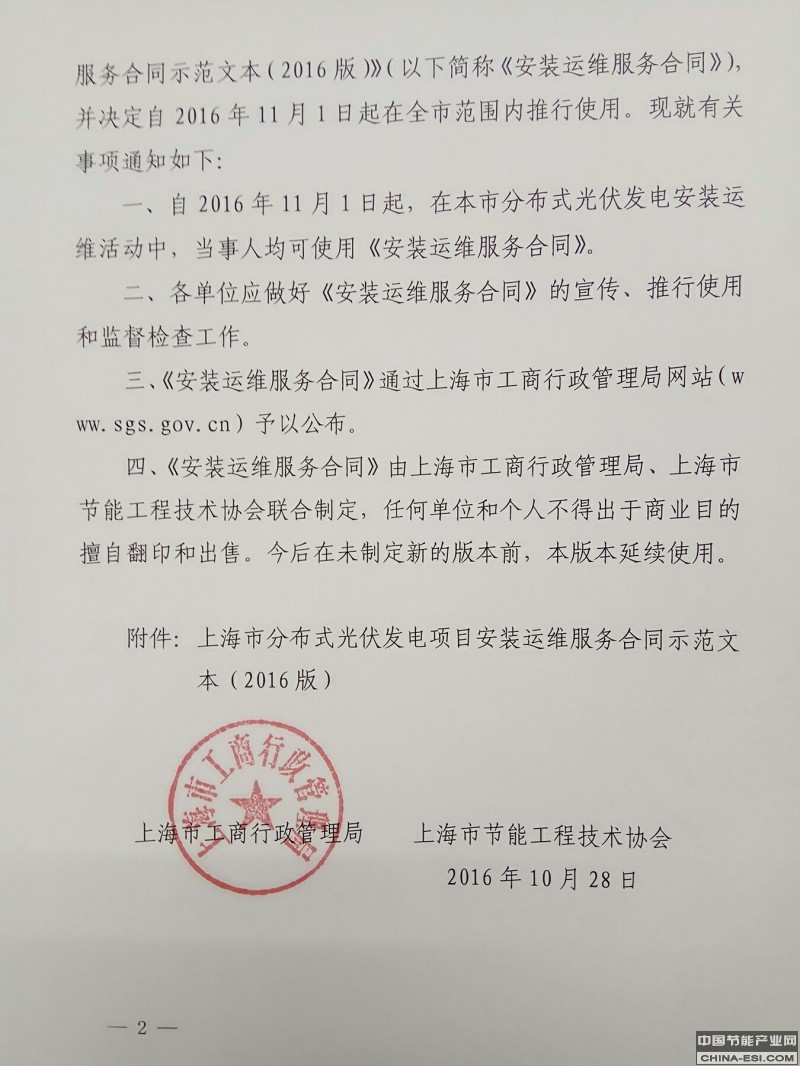 为规范分布式光伏发电安装运维行为,维护合同双方当事人的合法权益,促进新能源行业健康有序发展,根据《中华人民共和国合同法》等有关规定,上海市工商行政管理局、上海市节能工程技术协会联合制定了《上海市分布式光伏发电项目安装运维服务合同示范文本(