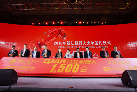 钱江机器人高度重视研发和人才培养,成立浙江、哈尔滨、上海三大研发中心,与哈尔滨工业大学、浙江大学、浙江工业大学、北京机械工业自动化研究所、清华长三角研究院等多所高校和科研机构合作,建立“产、学、研”三位一体的研发体系。发布会现场,浙江爱仕达电器股份有限公司与清华长三角研究院、北京机械工业自动化研究所、菲尼克斯(中国)投资有限公司,在智能制造领域签订战略合作协议,为爱仕达的智能制造战略布局又添加重要一笔。