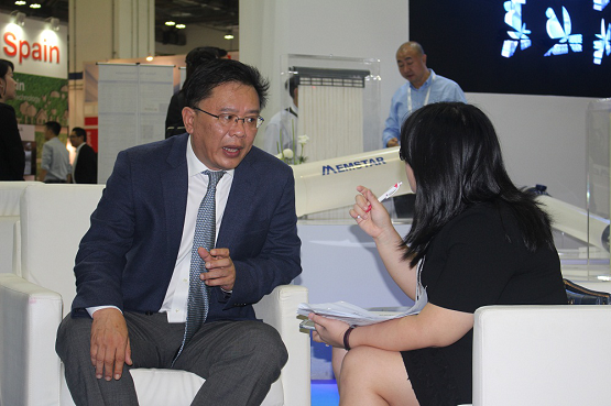 图为中信环境技术董事长、总裁郝维宝接受新加坡当地媒体记者采访