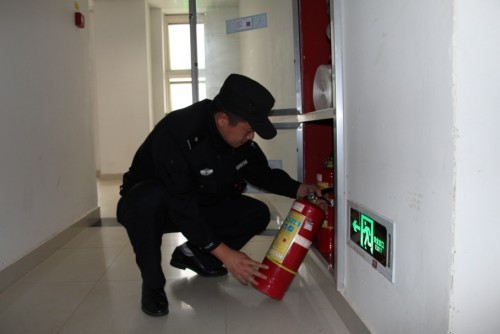 图为民警检查消防器材