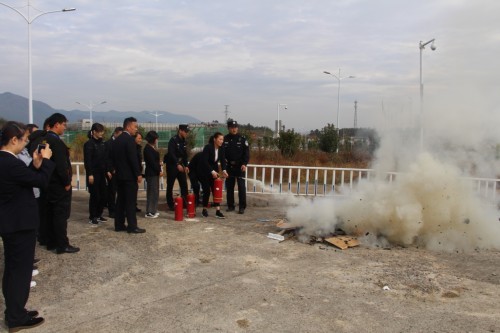 图为组织职工体验使用灭火器